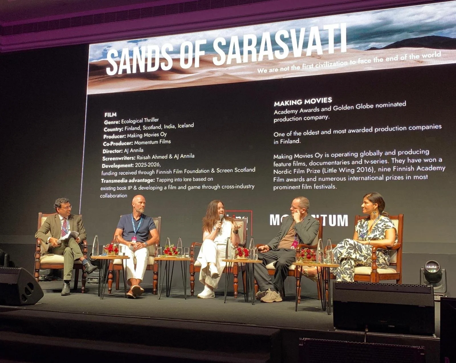 The upcoming feature film Sands of Sarasvati was prominently featured at Waves Film Bazaar in Goa, held alongside the Goa Film Festival. Making Movies’ Producer and Innovation Lead Pauliina Piipponen participated in the event, which brought together industry professionals from across the globe for meaningful and insightful exchanges on storytelling, innovation and future co-productions.